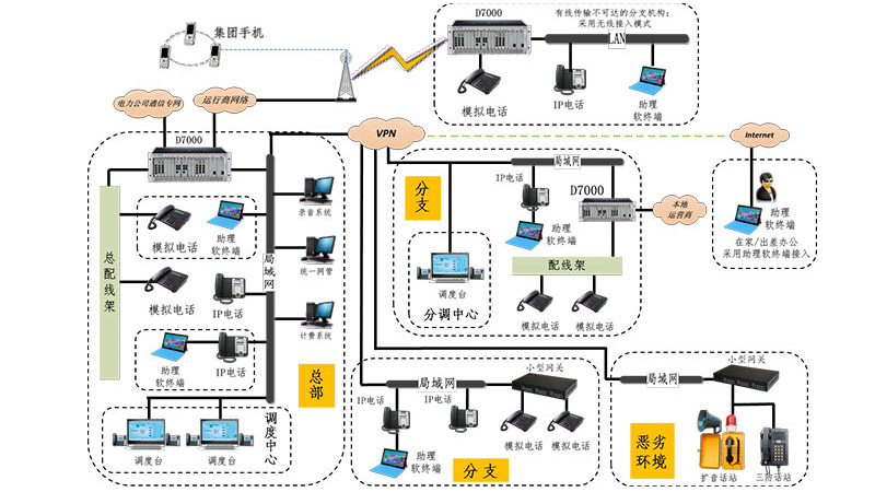 作为国内最早生产数字通信系统设备的厂家,秉承东方电子丰富的电信级通信产品研发和生产经验,D7000系列数字通信系统应运而生。 该系统将全套的语音、数据、互联网服务和丰富的增值业务应用、整合到单个系统中(All-In-One),实现了传统语音、VoIP语音、数据和增值业务的融合,为用户提供综合通信业务的基础平台,实现企业各生产部门人员间的通信需求,以及各级指挥人员对所属职能部门和人员的指挥调度作业。 D7000系列数字通信系统产品以??榛男问教峁┢笠邓璧母髦止δ?,满足不同用户的需求;系统开放、可靠、可定制、易于扩展和升级,容易获得和使用,可实现多种方式的通信。更低的通信费用、简化的系统安装管理和更广泛的业务应用,使其不仅能够满足当下的通信需求,更便于规划未来的发展。